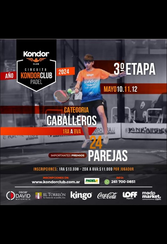 »» Evento: Circuito Caballeros Kondor CLUB 2024 - Etapa 3 »» Localidad: Mendoza »» Fechas: 10/05/2024 al 12/05/2024