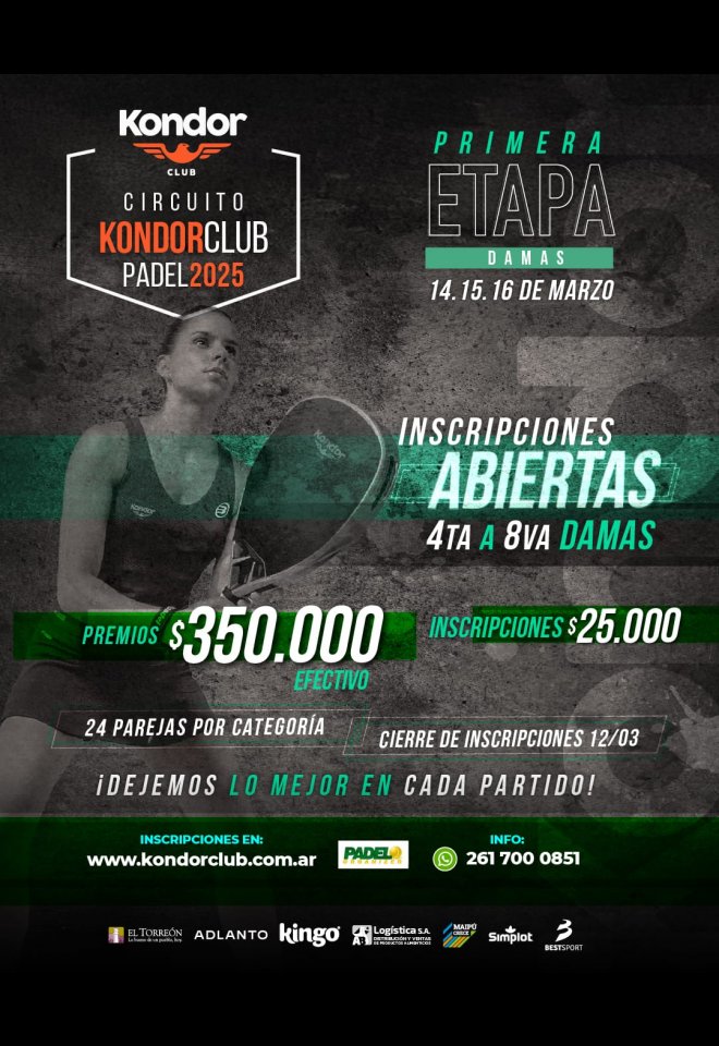 »» Evento: Circuito DAMAS Kondor Club - Etapa 1 »» Localidad: Mendoza »» Fechas: 14/03/2025 al 16/03/2025