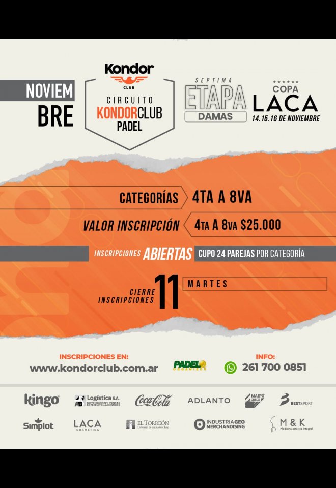 »» Evento: 7ma ETAPA DAMAS »» Localidad: Mendoza »» Fechas: 14/11/2025 al 16/11/2025